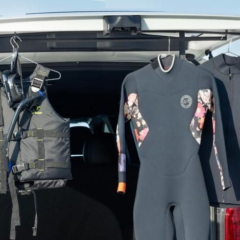 ・ウェットスーツやスキーウェアなどを掛けても錆びにくいよう、バーはアルミ製、ブラケットはステンレス製を採用。