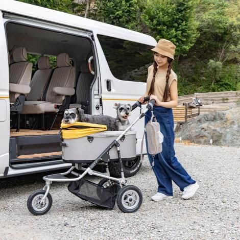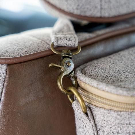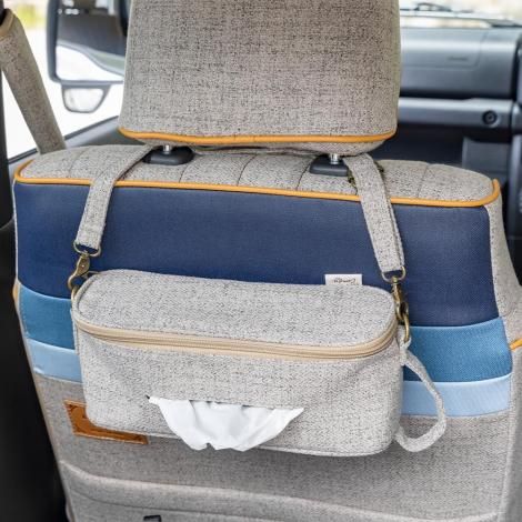 車のシートに取り付けたまま使えるのはもちろん、さっと取り外してベビーカーに掛けたり、お出かけ先でも気軽に使える便利なアイテムです。