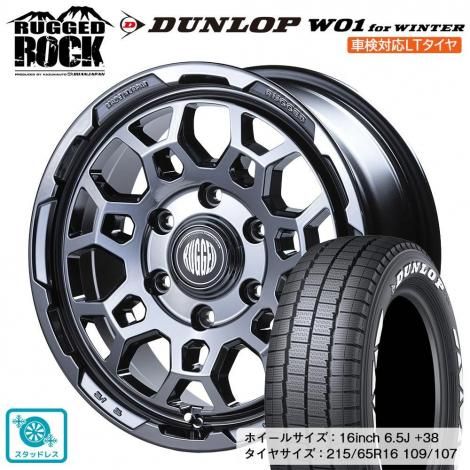 スタッドレスタイヤ4本セット RUGGED ROCK 特別色 ダークメッキ ダンロップ W01 for WINTER